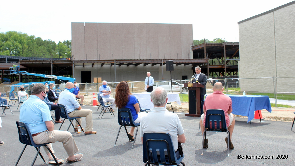 The event, emceed by School Building Committee co-Chairman Tom Callahan, was smaller than normal largely to abide by social distancing. Officials had also eschewed a formal ground breaking, which should have taken place in March, because of the COVID-19 pandemic.